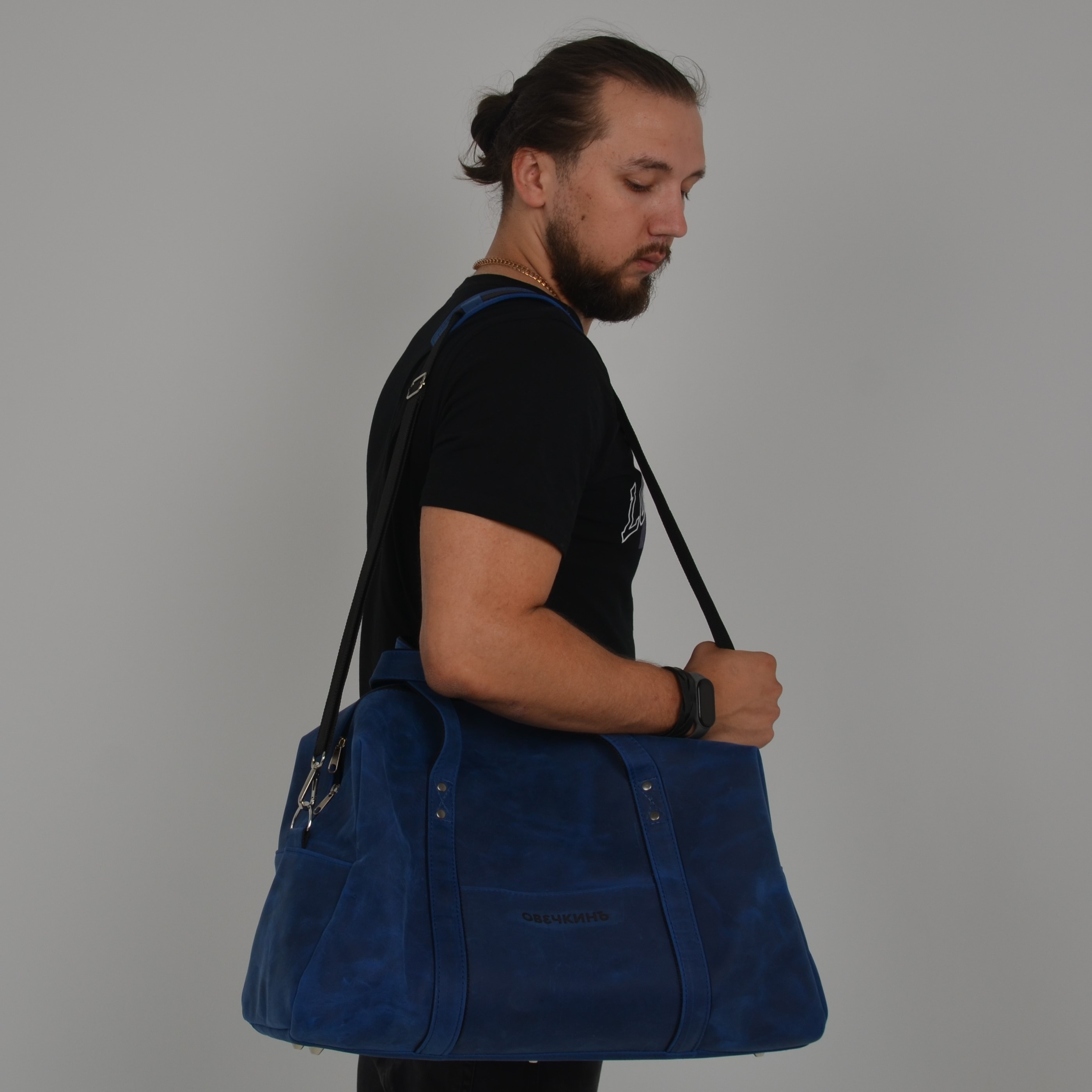 CRAZY HORSE - This is a natural leather with an aging effect thanks to a special wax treatment. It brightens in places of breaking, bending or tension, and the pattern on the skin is constantly changing. Horse leather is soft, has a matte surface that is pleasant to the touch. The bag is ideal for long trips, as well as small trips out of town and going to training or the gym. Designed to transport various things on the road. Very convenient to move. Good capacity, light weight, wearability and small dimensions are the main advantages of this model. A large bag made of genuine leather is perfect for work trips, business trips, in cases where you do not need to take a large suitcase with you for a small number of things. The bag has comfortable pockets on the sides, one of which has a zipper and functional patch pockets inside. Wide handles will provide maximum travel comfort.
