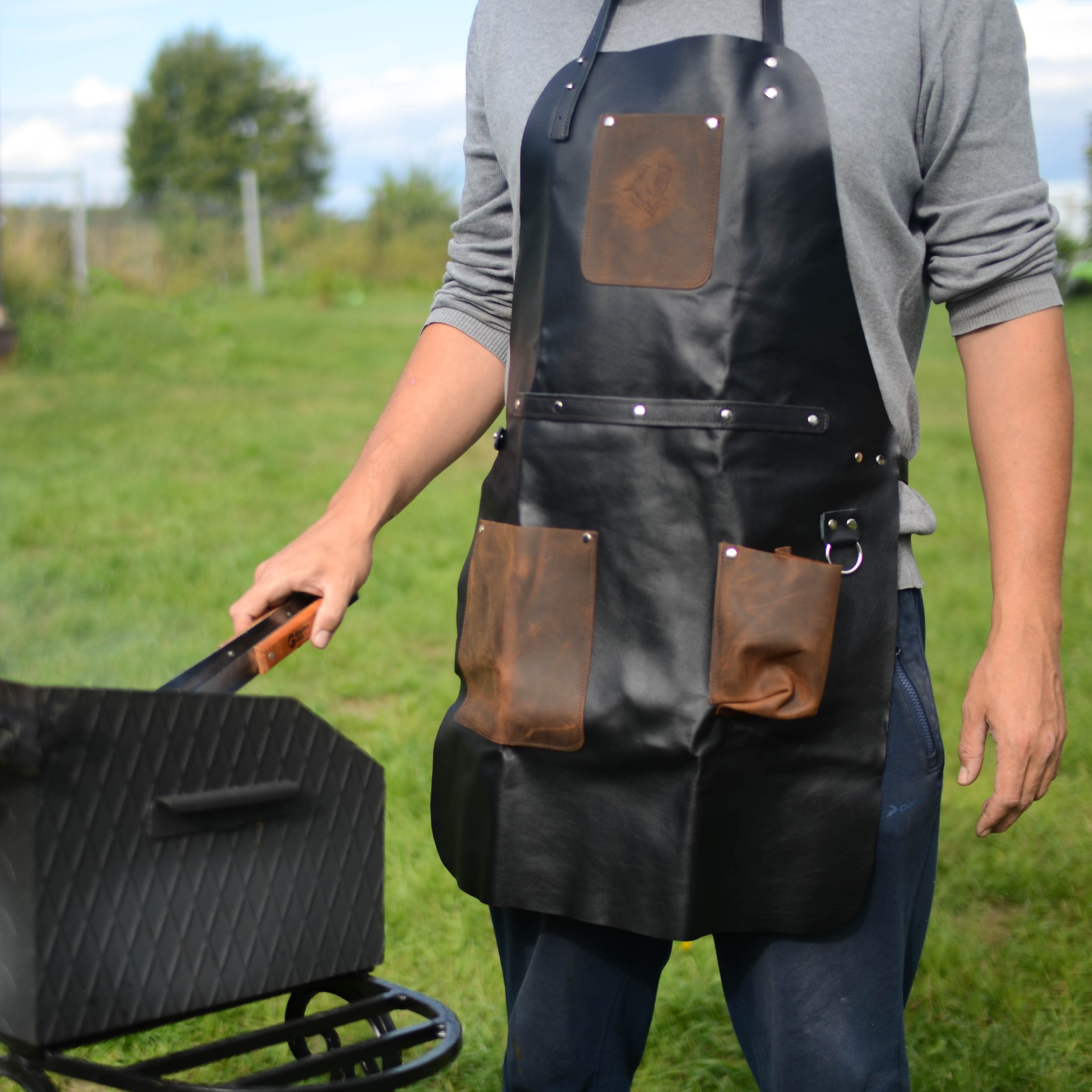Exact repetition is not possible, since each piece of skin is unique and has its own characteristics. Therefore, each leather apron is one of a kind.