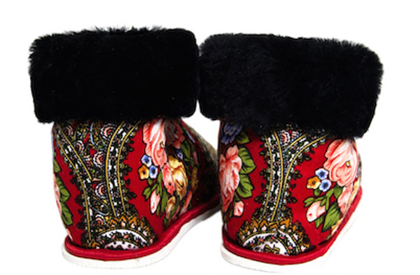 Upper: twill scarf with floral prints "ethno a la rus" (wool 80%, viscose 20%)