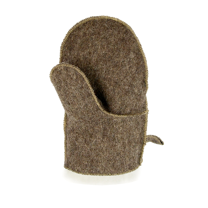 Felt bath mitt with natural sheepskin fur with a loop for drying the product. Inside: 100% natural sheepskin, outside: natural felt (90% wool content).