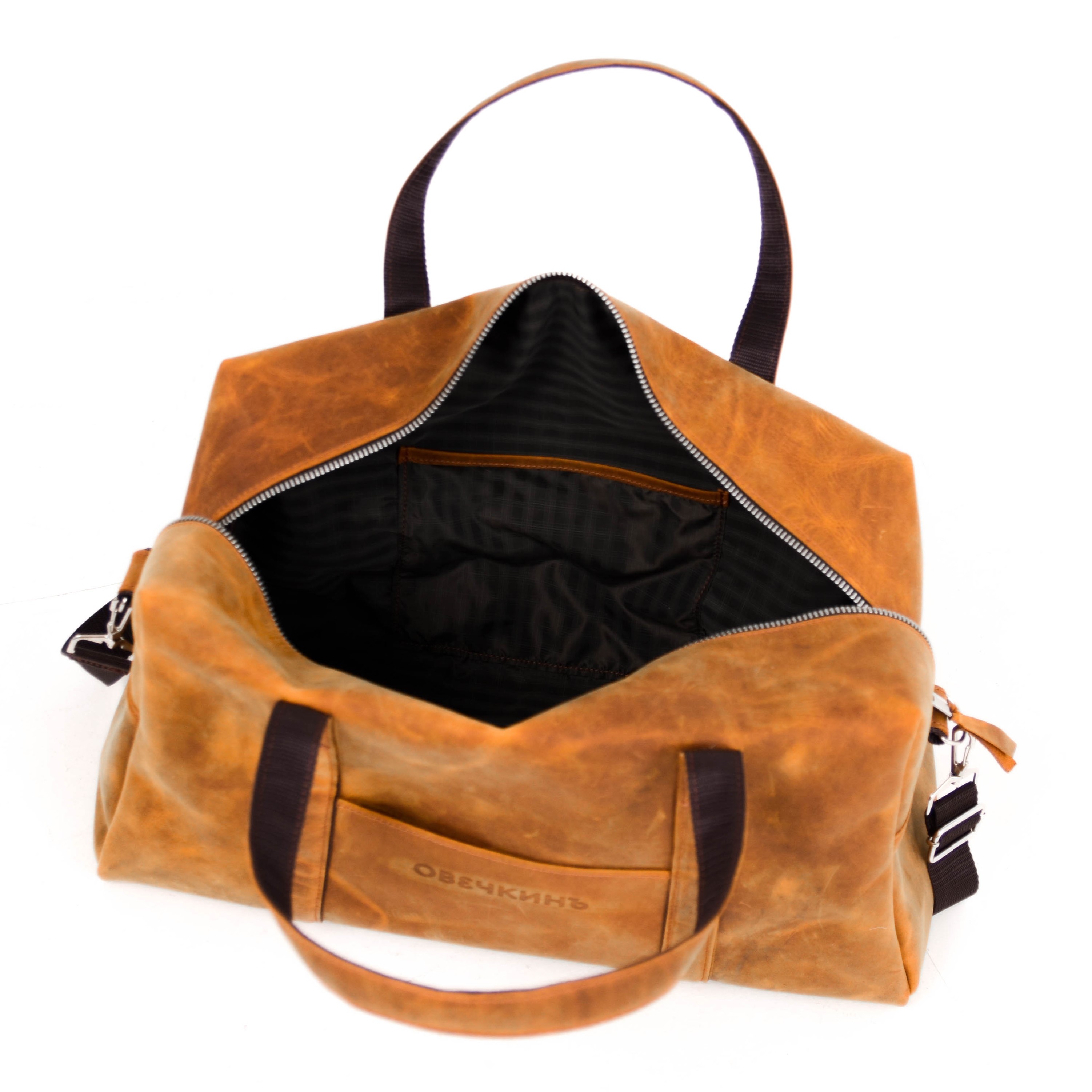 A large bag made of genuine leather is perfect for work trips, business trips, in cases where you do not need to take a large suitcase with you for a small number of things.