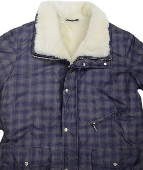 - two large side patch pockets with metal buttons; one side cut-in pocket with a metal zipper;