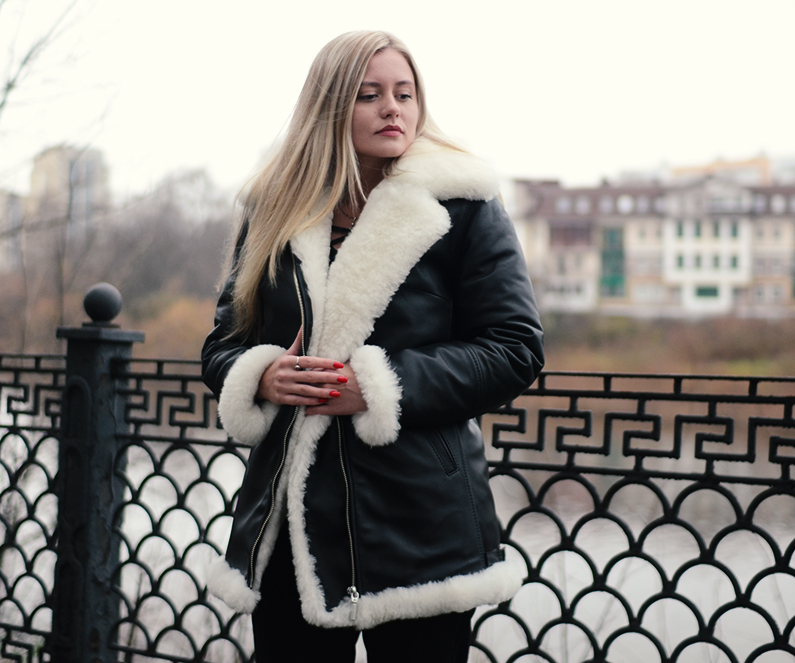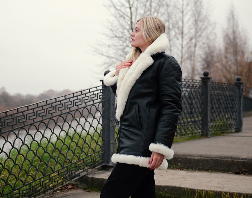 Sheepskin leather jacket "Aviator"- the jacket is covered with durable sheepskin leather;