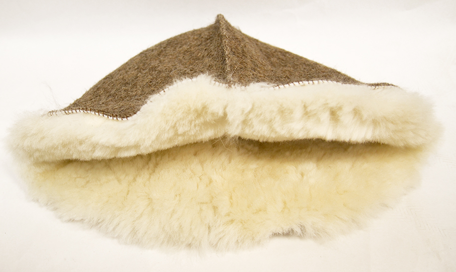 - a bath hat made of natural sheepskin practically does not absorb sweat and does not lose its shape for a long time;