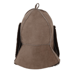 A bath hat that covers not only the head but also the neck. Made of natural sheepskin.