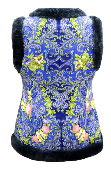 Women's vest, in the Russian style, covered with a shawl- Made of natural sheepskin;