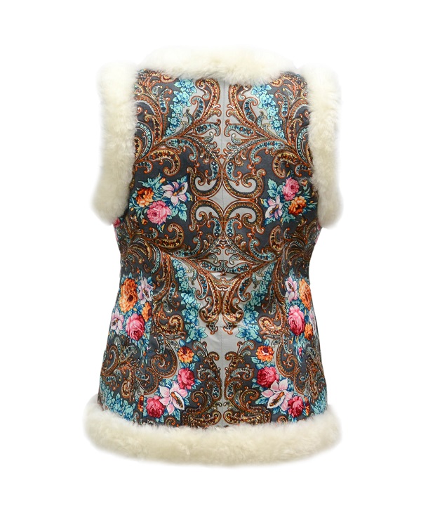 Women's vest, in the Russian style, covered with a shawl- Made of natural sheepskin;
