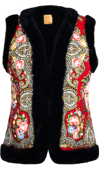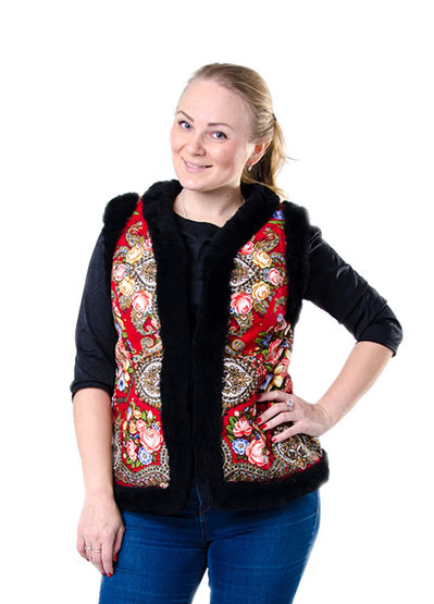 Women's vest, in the Russian style, covered with a shawl- Made of natural sheepskin;